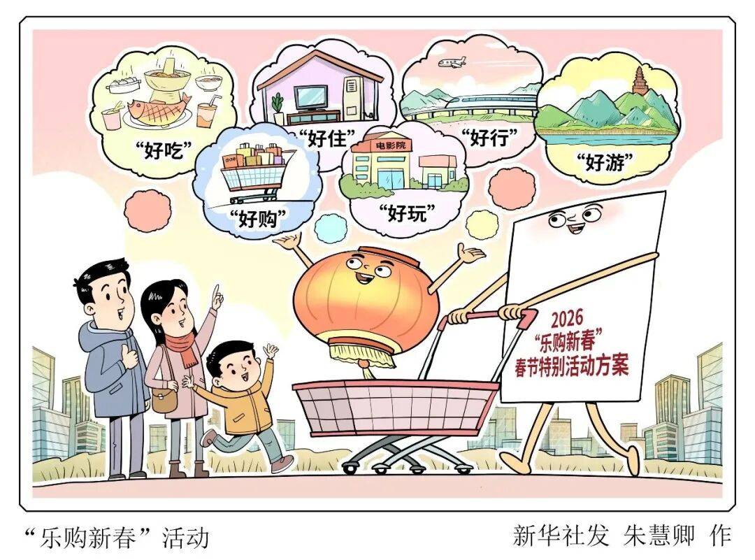商务部等9单位日前印发《2026“乐购新春”春节特别活动方案》,活动时间为2月15至23日春节9天假期,旨在繁荣节日市场、丰富群众文化生活、激发假期消费活力,打造全域联动、全民乐享的春节消费盛宴。