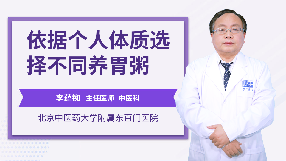59b31a8f-d858-302e-b15f-7f6f903fe366养胃粥要根据不同人的胃的情况,来选择不同的,比如这个人的体质、胃是一个胃寒型的,吃凉的东西容易疼,容易不舒服,喜欢吃一些热的,那往往提示是个胃寒,那我们可以用一些羊肉养胃粥,它的成分主要是羊肉,再加点粳米、生姜、大葱之类的,按一定的比例熬成了粥,这种粥它具有温热的作用,所以对胃寒的人比较好。对于胃气虚,胃阴虚这样的,我们可以选择百合莲子粥,我们可以加一些山药、百合、莲子、大枣,这种对于养胃气比较好。所以对于平时脾胃比较弱,胃阴虚的这种体质的病人,用这种百合莲子粥比较好,因此选择哪一种养胃粥,还要根据自己的体质。