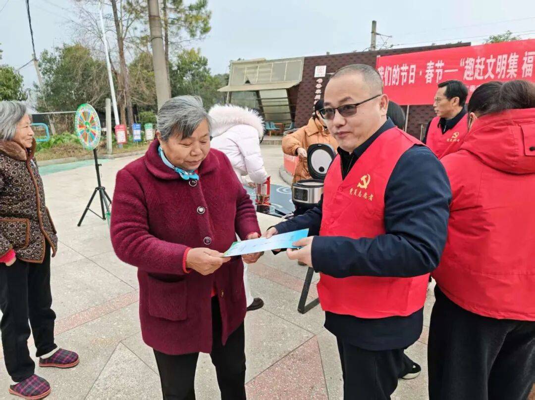 趣味互动环节拉开帷幕,现场热闹非凡。打麻糍、品八宝粥的传统民俗体验区前,居民们踊跃参与、分工协作,捶打声、欢笑声交织成温馨的节日乐章,热气腾腾的麻糍和香甜软糯的八宝粥,让大家在品尝美食的同时,感受着传统节日的独特魅力;套圈、扔球、垃圾分类转圈等文明主题游戏区更是排起了长队,游戏将文明知识与趣味挑战相结合,居民们在轻松玩乐中加深了对禁燃禁放、垃圾分类等内容的理解,现场不时响起阵阵喝彩声。