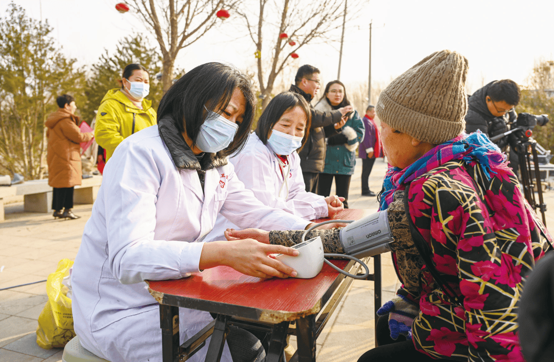 舞台旁的健康义诊服务同步铺开。此次新春送福活动覆盖全县各乡镇,各地卫生院均主动下沉服务,将健康检测、诊疗咨询送到群众家门口。医护人员现场为乡亲们测量血压、答疑解惑,用接地气的话语普及健康常识、提供专业指导,在欢声笑语中把健康关怀送到群众身边。