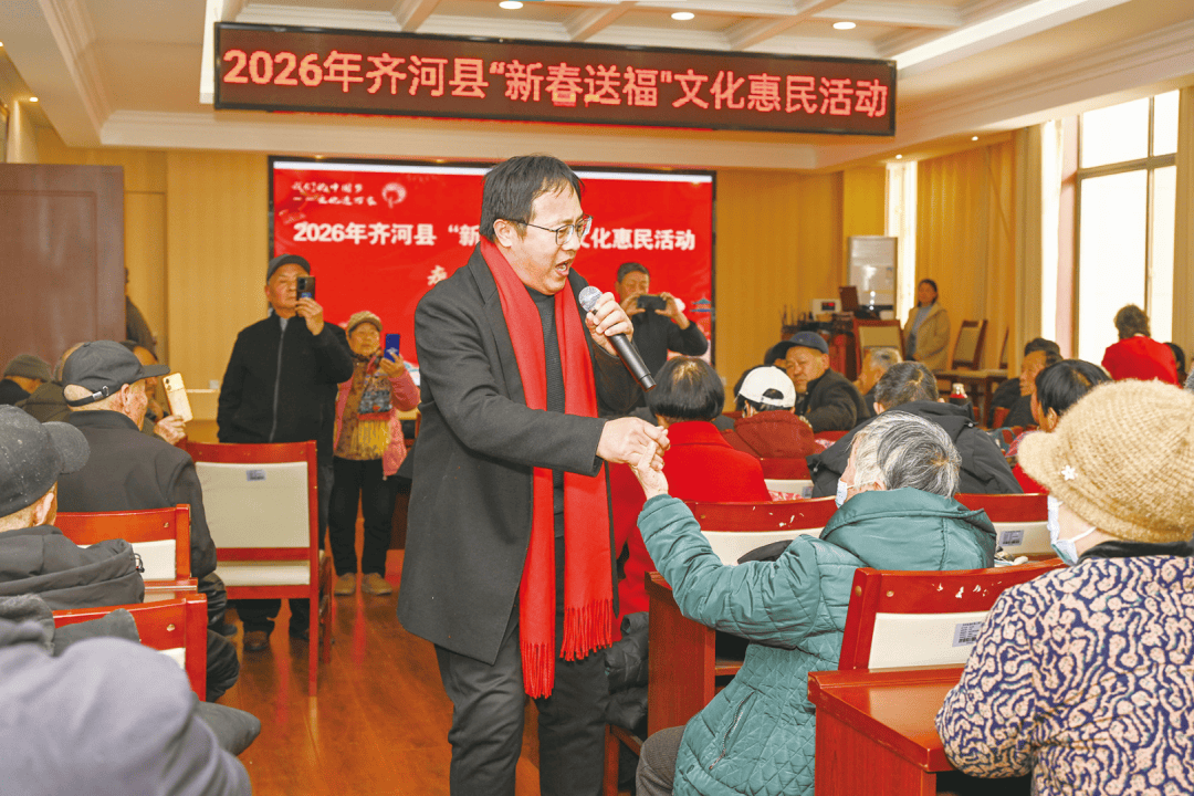 “群众需要什么,我们就送什么……”天寒情暖,民心滚烫。齐河县“新春送福”文化惠民活动直抵基层一线,舞台上文艺节目精彩纷呈,舞台下写春联、测血压、送服务同步开展,文化润心与便民惠民同频共振,让新春祝福既有温度更有实效。