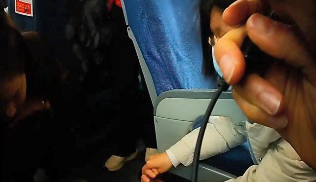 女儿急得不行,双手死死地拉着母亲的外套,大声喊“救命”,很快就有列车工作人员跑过来帮忙了。